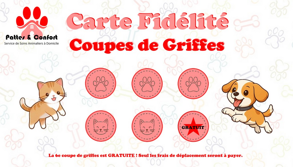 • Et la 6e coupe de griffes est GRATUITE ! (Seuls les frais de déplacement s’appliquent.)